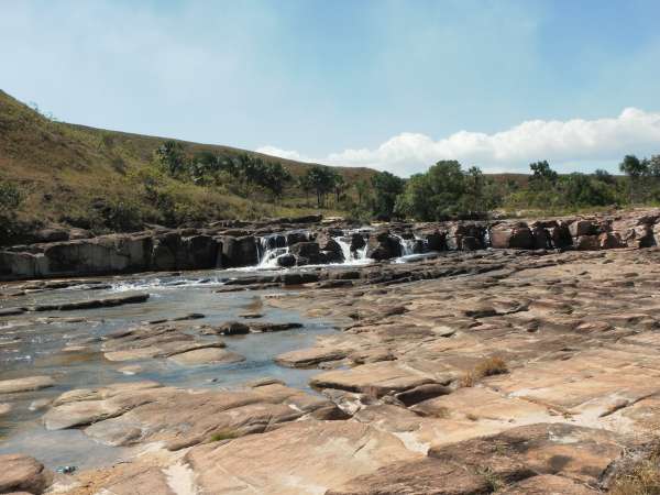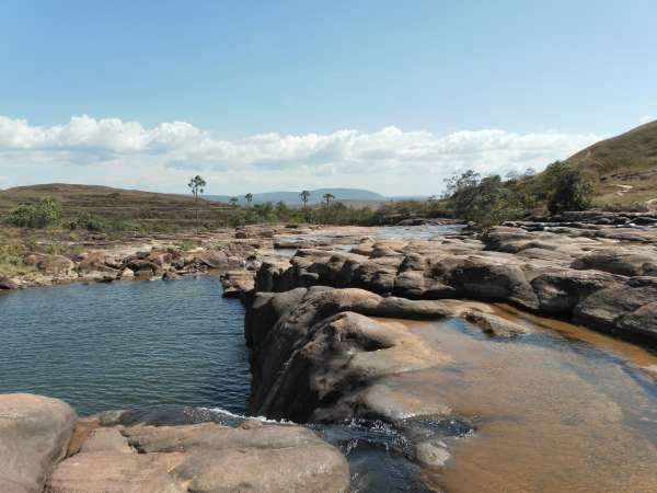 GRAN SABANA - MIGAWKI Z PODRÓŻY W INTERIOR cd.Zaciekawieni najmniejsi mieszkańcy Gran Sabany. Wodospad Suruati, piękne kaskady i wspaniałe koryto kamiennego potoku "Pożyczony jeep, wlókł się trząsł i chwiał, ale przecież wiózł, tam gdzie wieźć nas miał", chociaż rozsypał nam się układ wydechowy i trzeba było szukać pomocy :-), a w ramach ciekawostek - 1 litr benzyny za równowartość 11 groszy (jeśli ktoś nie wierzy to piszę słownie: jedenaście groszy)