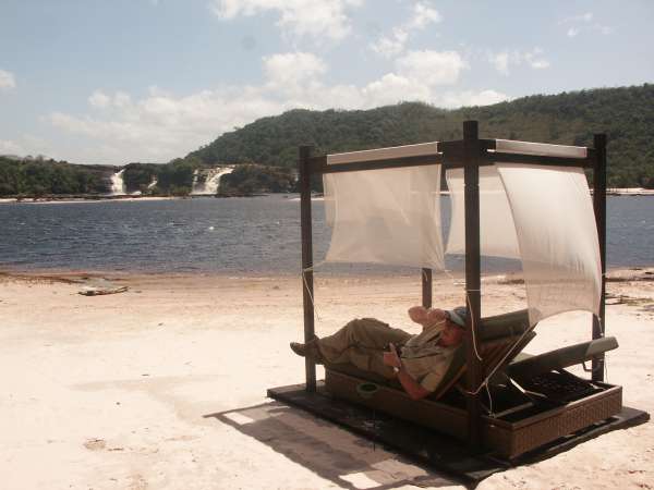 CANAIMA - PARK NARODOWY Z WODOSPADAMI SALTO SAPO (wodospad żab) i EL SAPITOBardzo klimatyczne i energetyczne miejsce, można by tam nieco dłużej poleniuchować z dobrą buteleczką burbona w lodzie :) Przejście pod wodospadem żab kamienną śliską ścieżką dostarcza wielu emocji i wrażeń a wychodzi się stamtąd mokrusieńko. Targ uliczny gdzieś po drodze w interiorze (chyba Puerto Odraz) to najlepsze miejsce na codzienne zakupy spożywcze i nie tylko.